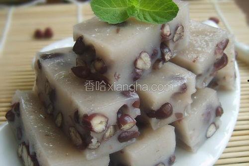 10. 脱模与切块:将冷藏好的红豆糕从模具中取出,切成小块,即可享用。